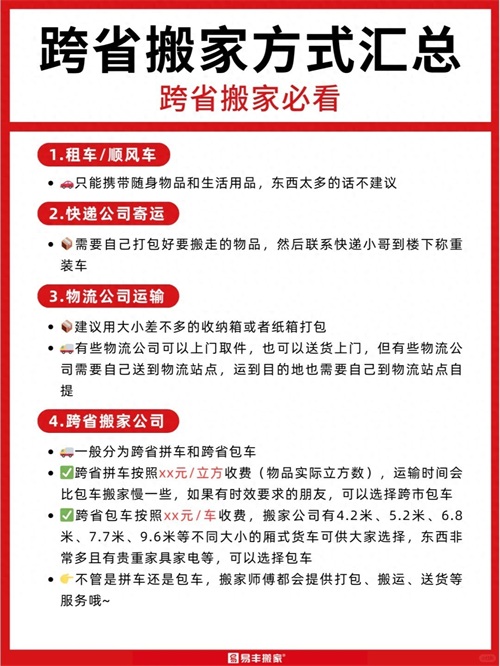 跨省搬家有很多方式可以选择,那么到底应该怎么选择才更合适呢?