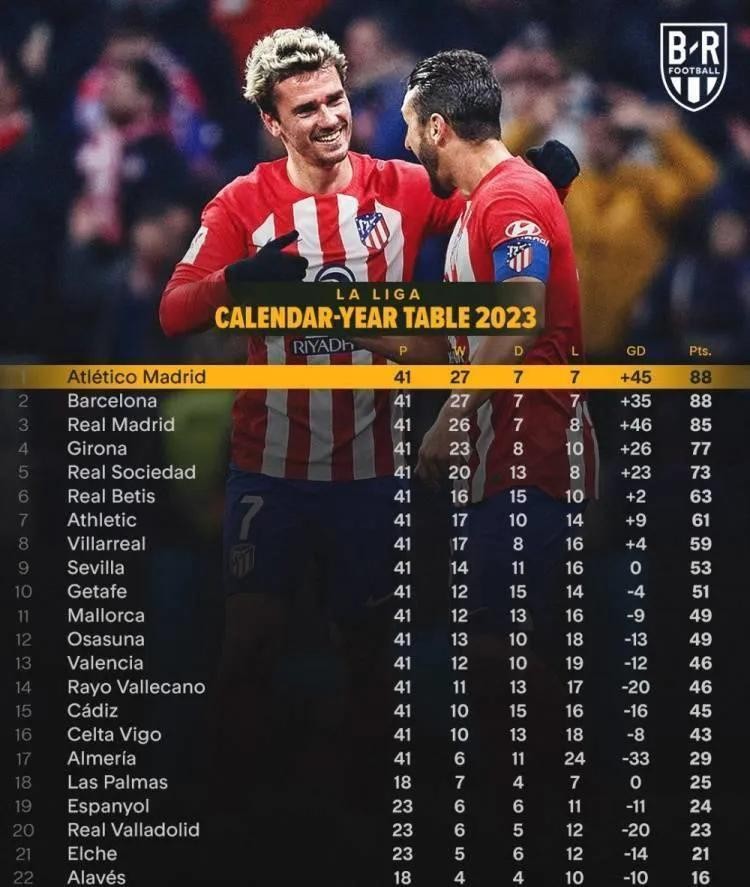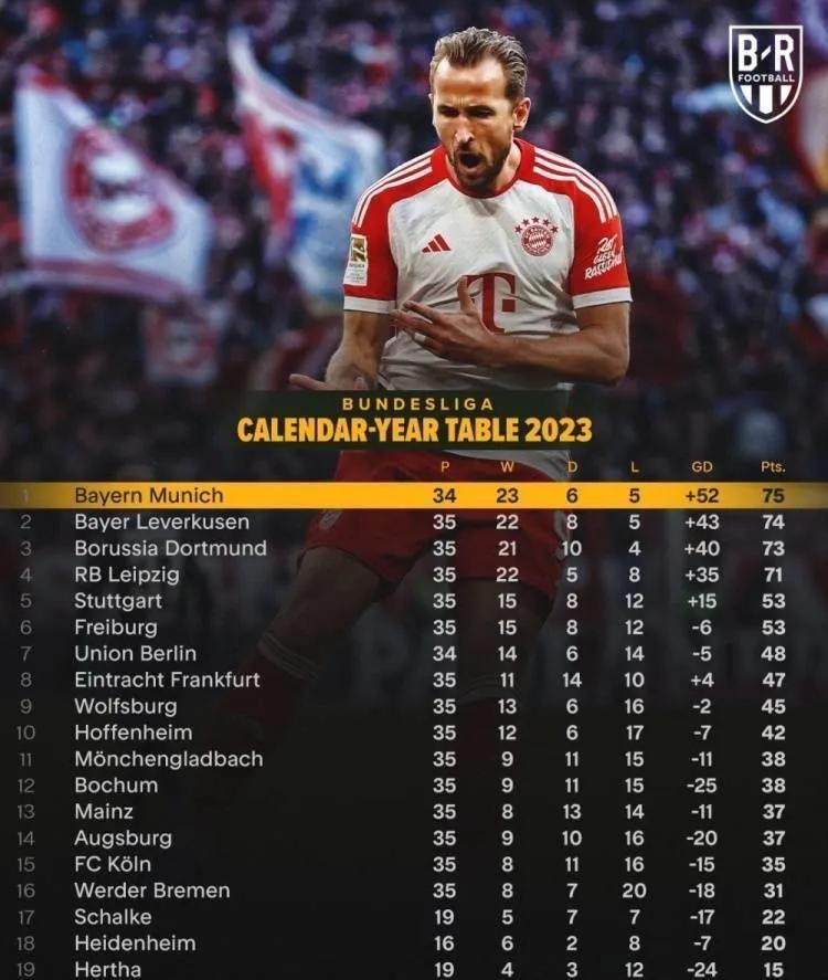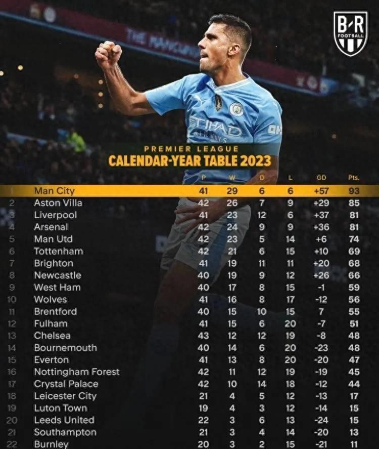 2023年五大联赛积分榜出炉,曼城、拜仁、国米、马竞、巴黎领跑