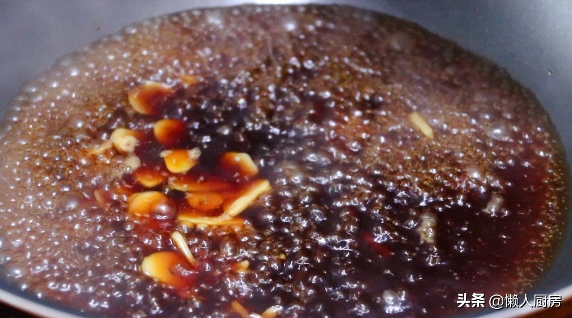 锅内倒入一小碗清水,放入切好的姜丝和蒜片,加盐、生抽、老抽、糖调味。