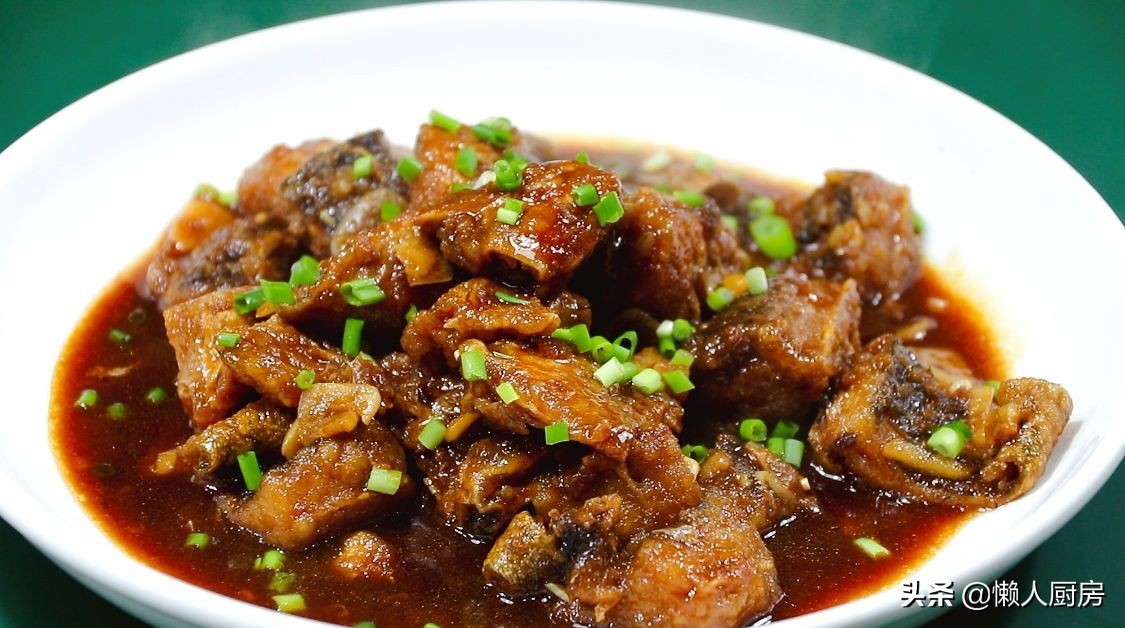 出锅,撒上切好的葱末,这道糖醋魔鬼鱼就做好了,肉质鲜美无腥味!