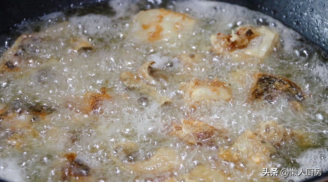 炸到鱼块表面金黄酥脆,就可以捞出来了。