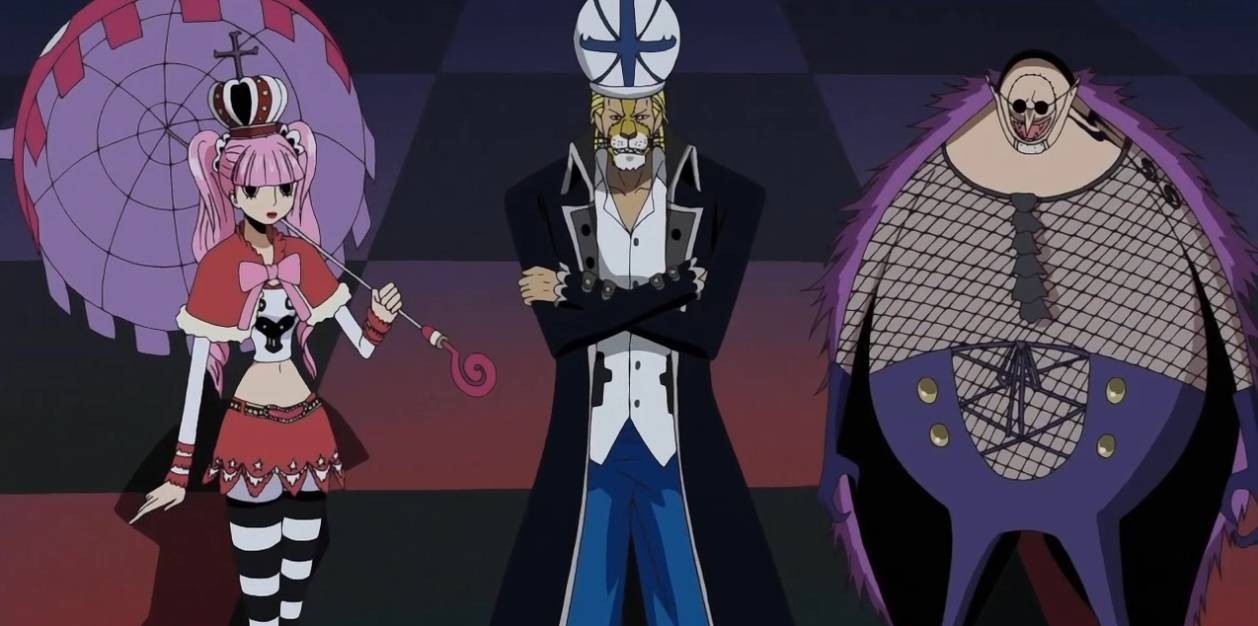 恐怖三桅帆船海贼团,一支由七武海月光莫利亚带领的海贼团,曾挑战四皇凯多而遭覆灭。船长莫利亚以影影果实能力重建僵尸军团,其中成员包括三怪人:金钱至上的霍古巴克、透明化能力的阿布萨罗姆和操控灵魂的佩罗娜。这个组合在浓雾海域设陷阱壮大军团。这些角色的背景和能力展示了人性的丑陋与超能力的复杂。这个故事反映了权力对人性的扭曲,同时也是对个人能力与欲望的探讨。