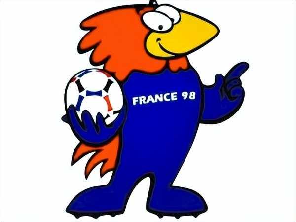 1998年法国世界杯吉祥物"Footix"(福蒂克斯)线条简单流畅,是一只拟人化的红黄蓝三色公鸡。