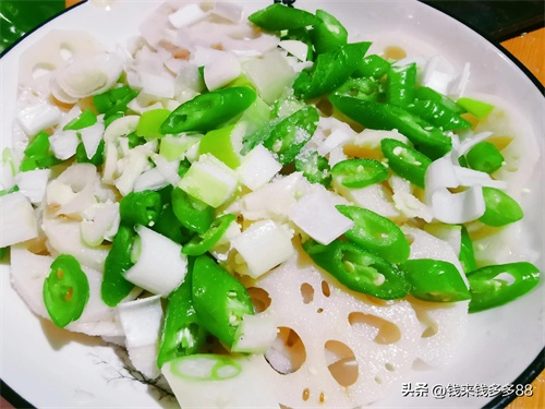 凉拌藕片的主要食材包括:藕、青椒、大葱、大蒜。