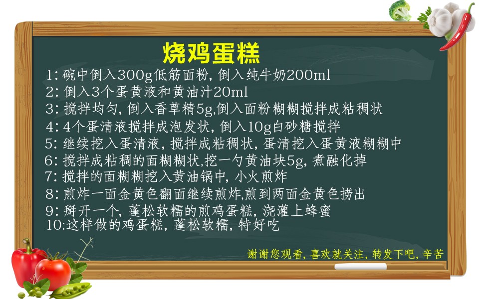 孩子今天说去幼儿园看到小朋友吃鸡蛋糕,但是他不好意思要,问人家好不好吃,小朋友根本不理会他,他回来告诉我,感觉自己也想吃,希望可以带给小朋友们分享,其实说实话我感觉自己很没用,赚的少,连给孩子最起码食物上的满足感都没足,其实我真的是想多了,想在赚多有多的活法,赚少有少的活法,其次就是孩子们外面买的鸡蛋糕不一定安全,今天我为了不让孩子失望,我自己在网上查找下了,自己来做一道鸡蛋糕试试看,因为家里买不起烤箱,就用平底锅试试!