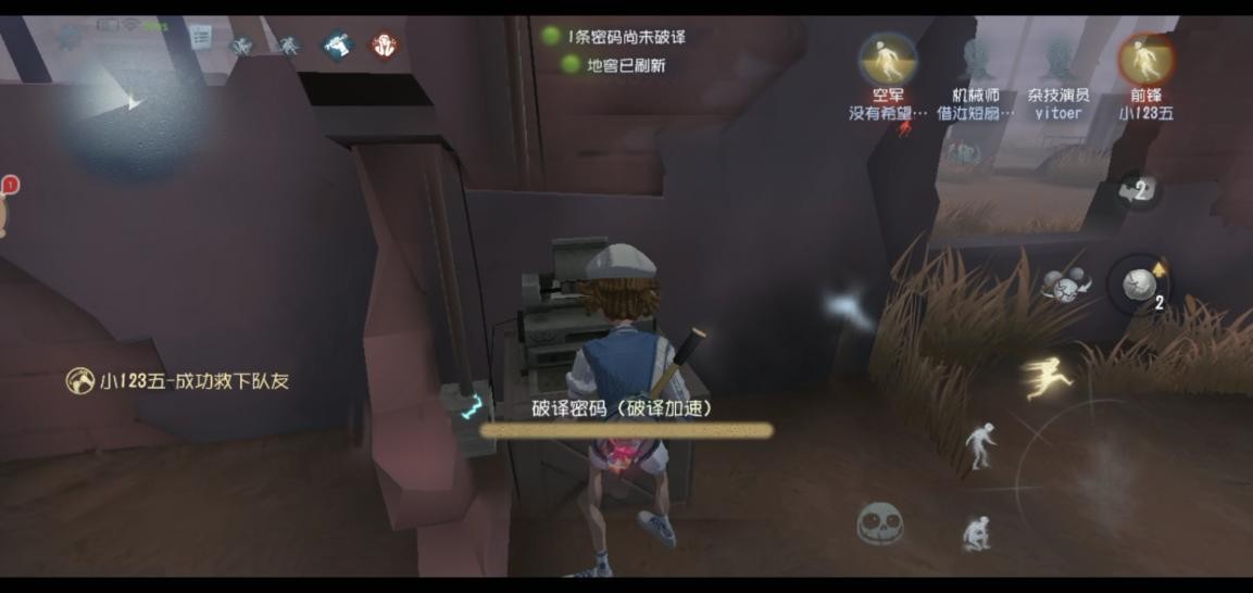 ③压机注意事项:如果此时追击型屠夫在追队友,建议是剩下人合修一台,可以发来补密码机让队友知道这台,修好后发压好密码机
