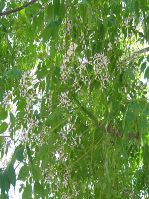 苦楝树看起来很普通,没有什么特点,也许在日常生活中我们都不会注意到它的存在。苦楝树的生长高度大概在10米左右,花瓣是那种白颜色里面还有黑色的斑点的,走到这棵树跟前,你也许会闻到香香的味道,那应该就是花发出来的味道。苦楝树的叶子是针形状的一样,我们可以拿来把它放在药里面,帮我们杀掉虫子,还能减轻我们的痛觉。苦楝树的树皮也可以用来治病,都是很不错的。除了苦楝树的叶子,其他部分基本上都是有点毒素在里面的,我们在生活中要注意,不要不小心给其他牲畜吃了,最后什么原因都不知道。同时我们也要知道苦楝树的一些地方是可以拿来放在药里面的,这种植物已经在很多地方都大量种植了,我们在栽种它的时候,要注意把每棵树和每棵树之间的距离弄好的,要不然长得不是很好。