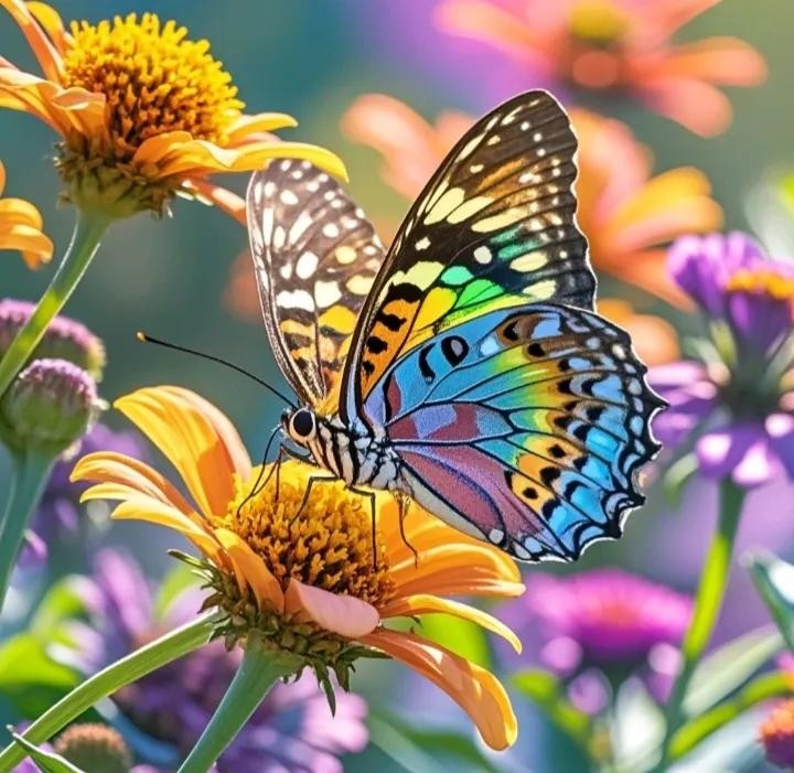 这些蝴蝶都很美丽,有的像仙女在空中翩翩起舞,令人陶醉,有的像一片枯黄的树叶落在树干上休息,有的像戏曲中张飞的脸谱引人发笑