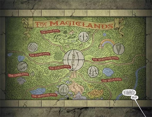 冥思螨提到的七个领域,不同于《海王》中的七个国度,指的分别是Funlands、Gamelands、Darklands、Earthlands、Monsterlands、Wonderlands和Wildlands。