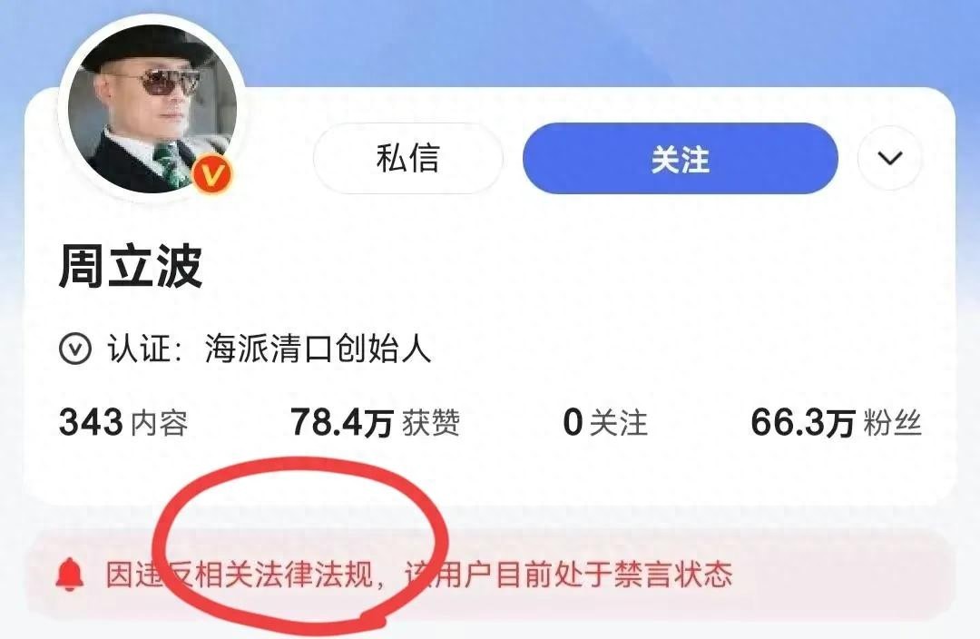 其二,周立波在网络上所发表的文章范围非常广,覆盖社会生活的方方面面,但很多领域不是随便信口开河的,周立波在评价国际和民生问题时,标新立异,引导错误价值观,违背公序良俗,从这个角度来讲,他也会被封禁!