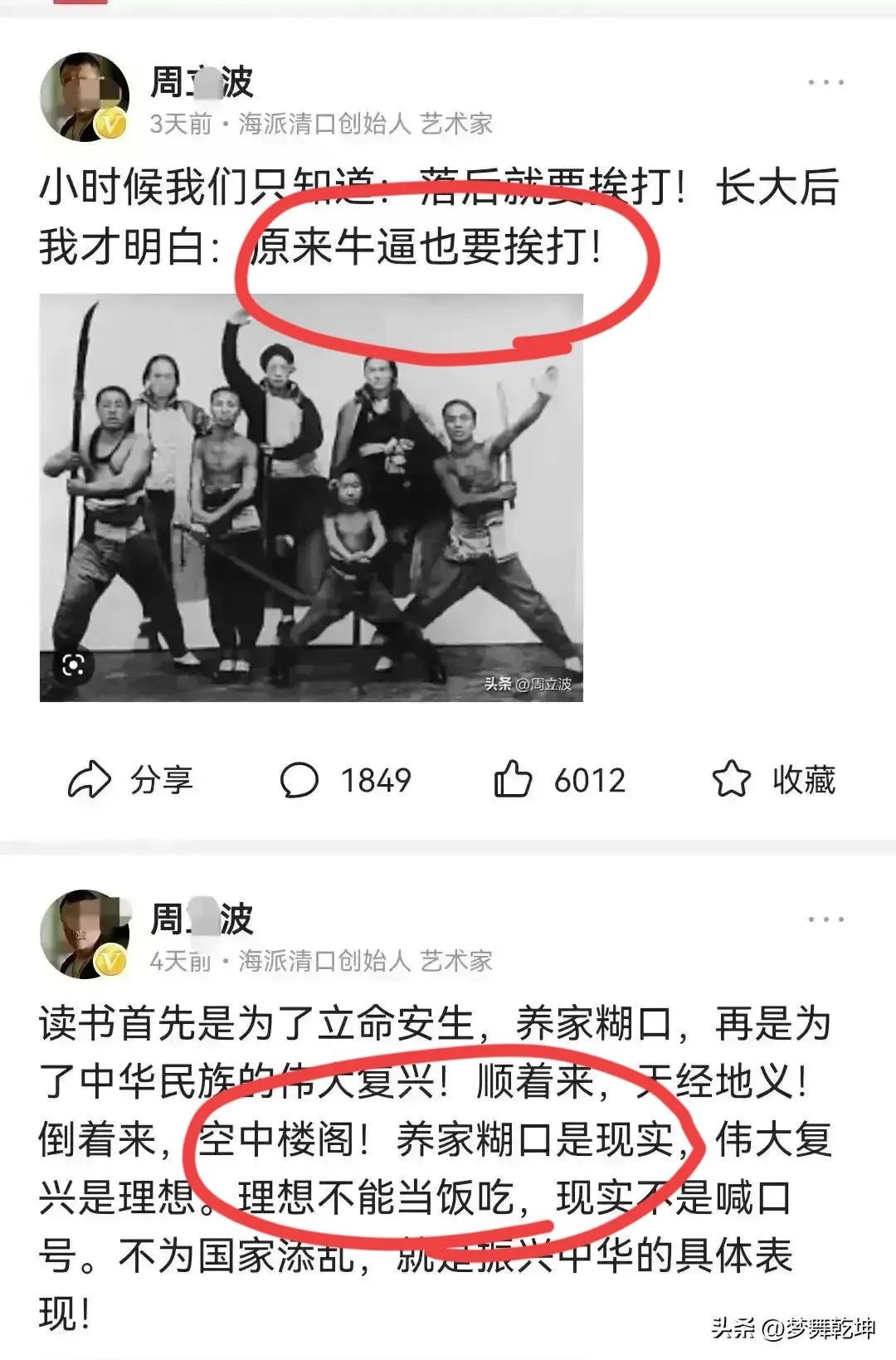 其一,周立波的过往经历有污点,这些年经常往国外跑,思想西化,他是一个被观察的人;虽然属于名人,也能去发表一些言论,但不能任意妄为!他毕竟是个有前科的人,比如说殴打自己岳父,违背基本的人伦道德,再口无遮拦,就没人惯他毛病了!