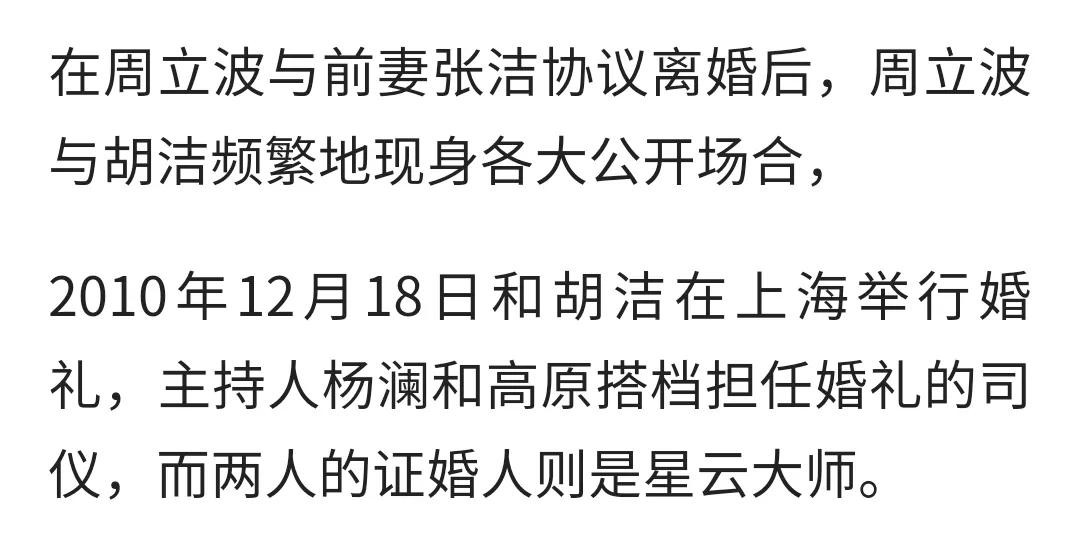 两个人的感情说来也奇怪,经历了差不多7/8年的好日子,随着波波事业不断崛起,又起了很多隔阂,最终两人再一次协议离婚,这一次估计是周立波净身出户!原配妻子自从在生命中认识他,被折腾够呛!