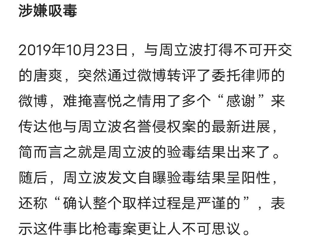 他跟唐爽之间的纠葛就好比翻脸比翻书快,周立波涉嫌吸毒一事像迷一样存在,他到底有没有吸毒?到底是不是位长期的瘾君子?我们也无从定论,但是在上海滩,懂行的朋友们,自己心中都会有数,六弟就不做赘述了!