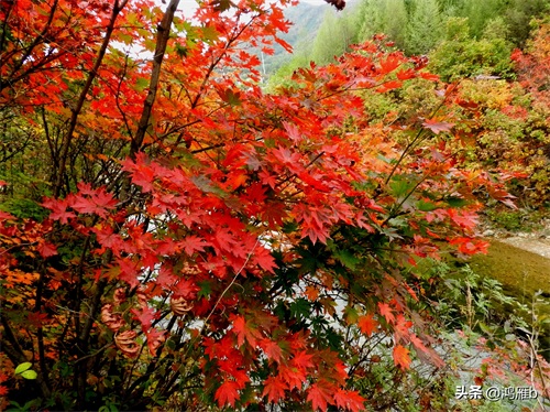 再来看看流经这里的小汤河两岸的红叶