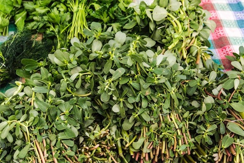 马齿苋,是趴在地面上生长的,叶子又小又圆,根茎部分则是红色的。马齿苋吃起来口感滑滑的,味道里带些酸味,很多人吃不惯那股比较冲的味道。马齿苋的叶子部分比较柔软,可以用来做汤或是炖菜食用。
