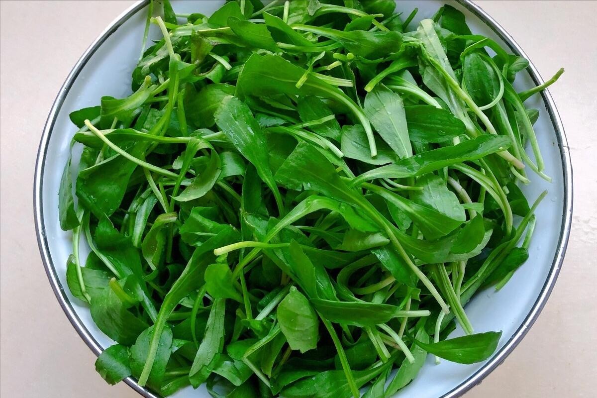 蒲公英,又叫婆婆丁菜,是一种药食兼用的野菜。蒲公英带有些许苦味,因此吃之前要先焯水,这样既可以改善口感,还能去掉一些不利消化的成分。焯过水的蒲公英,可以凉拌食用,或是炒菜、煮粥、做饺子馅都可以,味道比较清爽。