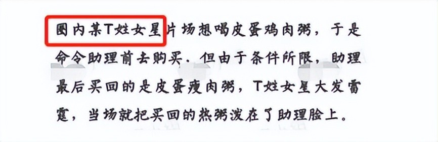 2014年网友爆料某女星将粥扣到助理头上一事引发轩然大波