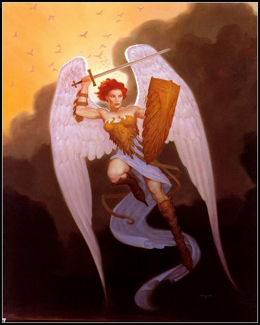 乌列的形象一般都是带有愤怒的天使之貌。加上其持有“火焰之剑”,据说他一直在伊甸园入口把守着。他还拥有一双“千里眼”,不仅能看穿人的罪行,还看出了撒旦想要入侵伊甸园的计划。