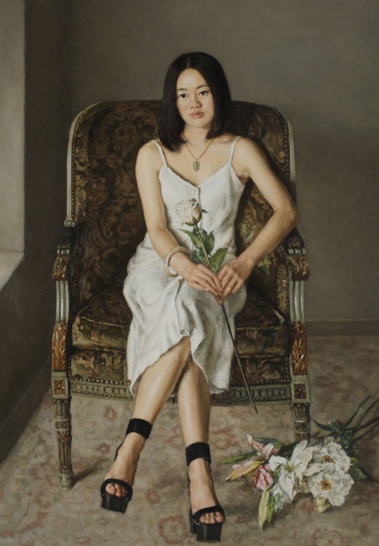 这幅画新娘的人体油画,在当年由中国美术馆举办的全国“油画人体艺术大展”上轰动了全国,也成了杨飞云的成名之作。这幅人体油画被雪藏二十四年后,出现在北京保利国际春拍上,以3450万的天价成交。这也是杨飞云绘画四十年多来,画妻子画得最好的一幅,至今也没有超越。