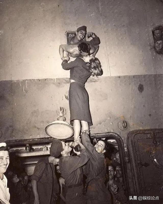 二战结束时,美国影星玛琳·黛德丽在大家协助下,跟一名归国士兵接了吻。1944 到1945年,她在阿尔及利亚等多地为盟军免费演出,据说比艾森豪威尔还更靠近前线。