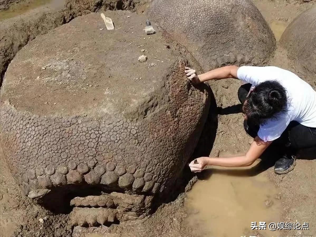 大家一开始以为是巨石,没想到是雕齿兽化石。这是阿根廷一位农民偶然发现的,专家研究后称,它距今约2万年。