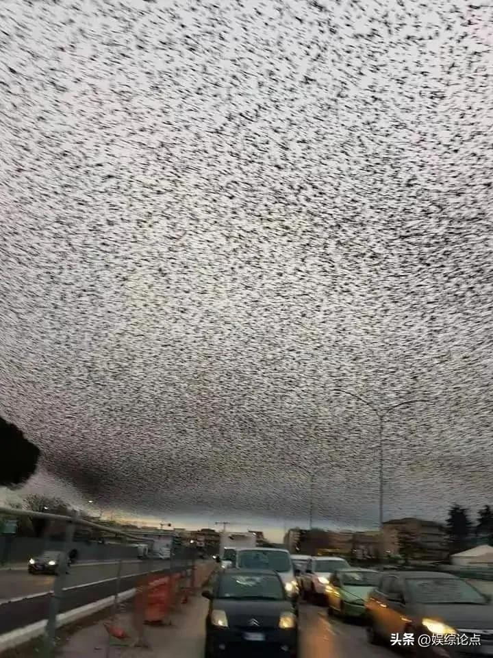 大概400万只椋鸟在迁徙时路过罗马,密密麻麻一大片,遮天蔽日的,那场面,就跟世界末日要来了似的。