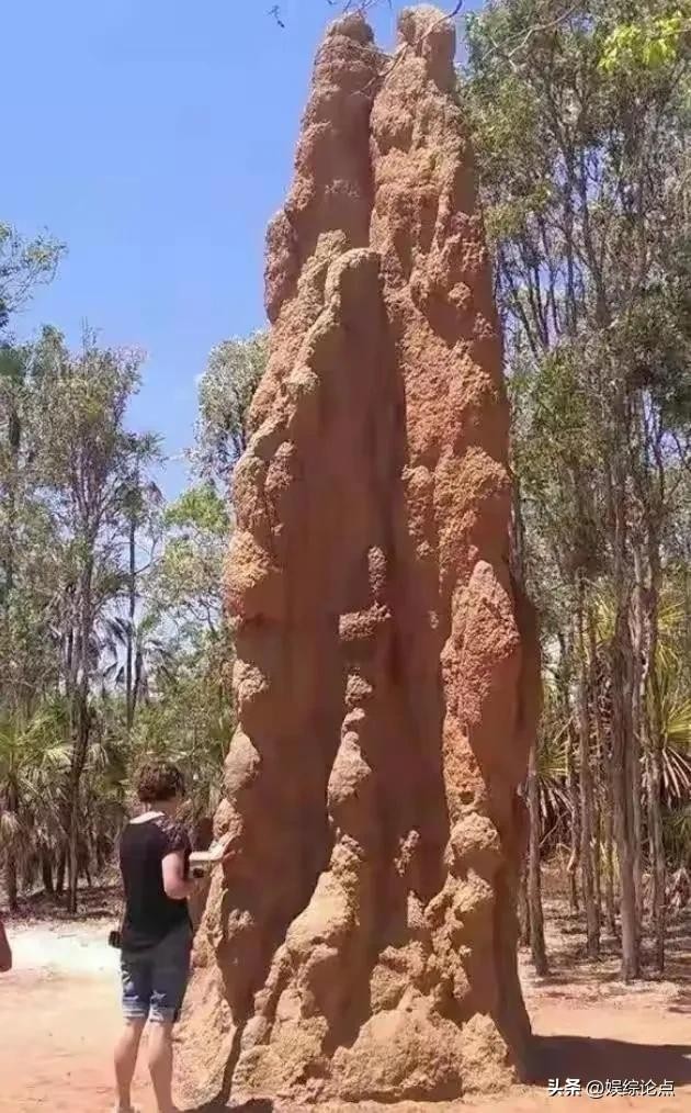 这是白蚁搭的巨大蚁巢。白蚁就像天生会搞建筑,有的蚁巢在地面上高高耸立,高度能超过9米 。