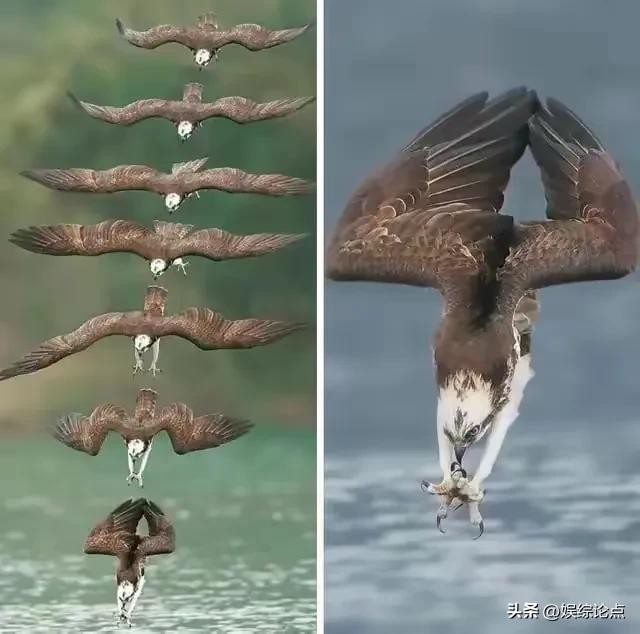 鱼鹰捕猎的时候,那动作干净利落,看着帅得不行!