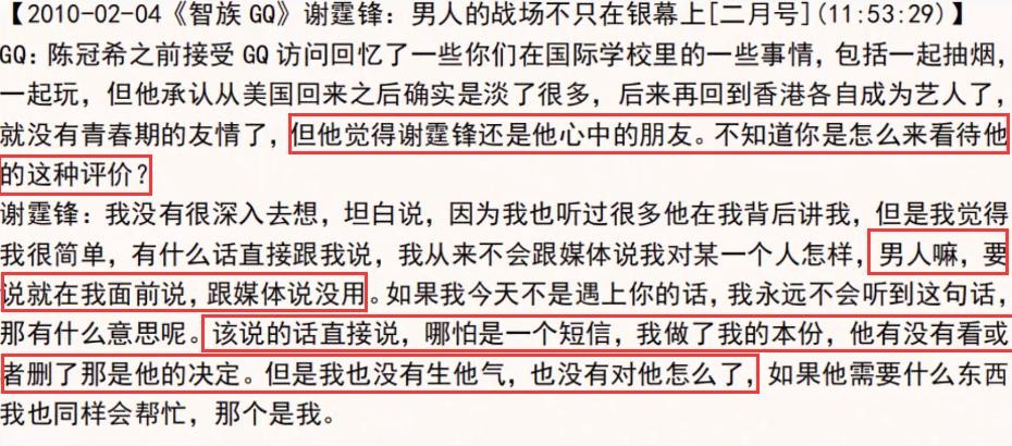 对于妻子和兄弟之间的闹剧,谢霆锋表示“没有永远的朋友,也没有永远的敌人,但他希望友情可以永恒,但是敌人没有永远的。”