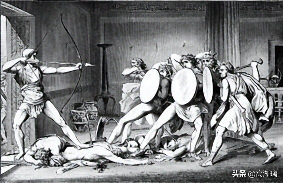 就这样,奥德修斯一箭又一箭,将求婚者一一杀死,夺回了属于自己的王位,与妻儿团聚在了一起。