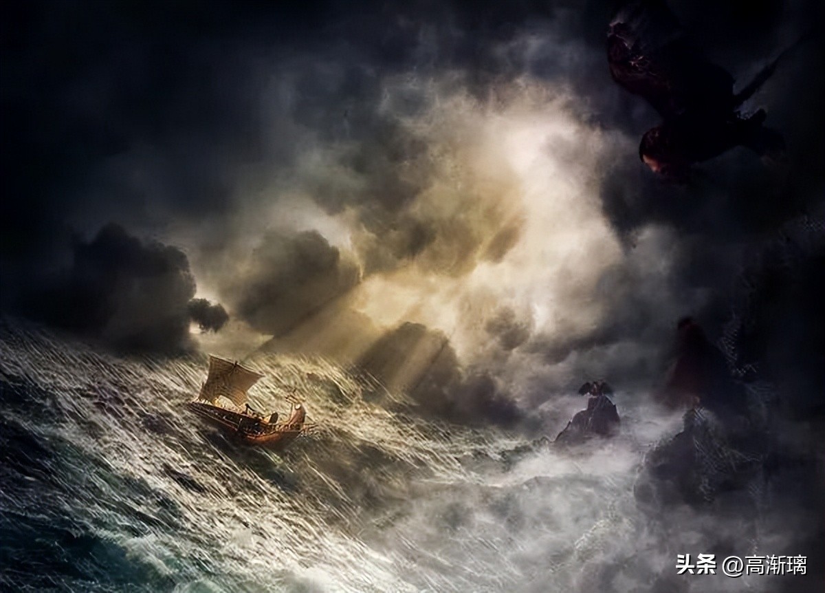 在漫长的归途中,奥德修斯因遭遇过风暴的袭击,在海上漂流过九天九夜;