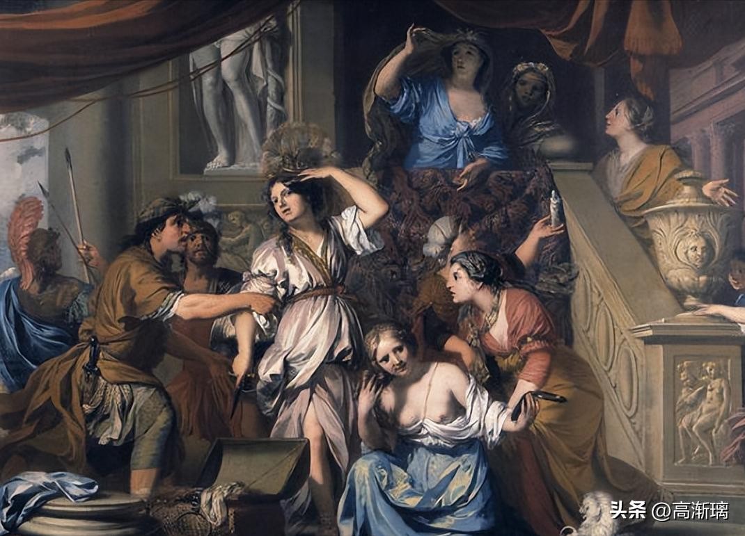 而阿喀琉斯作为一名伟大的战士,自然对珠宝首饰完全不感兴趣,眼睛里只有那些华丽的武器。当奥德修斯安排在王宫外的伙伴吹起军号,伪装敌人进犯时,更是让拿起了武器,准备抵御敌军的阿喀琉斯暴露无遗。