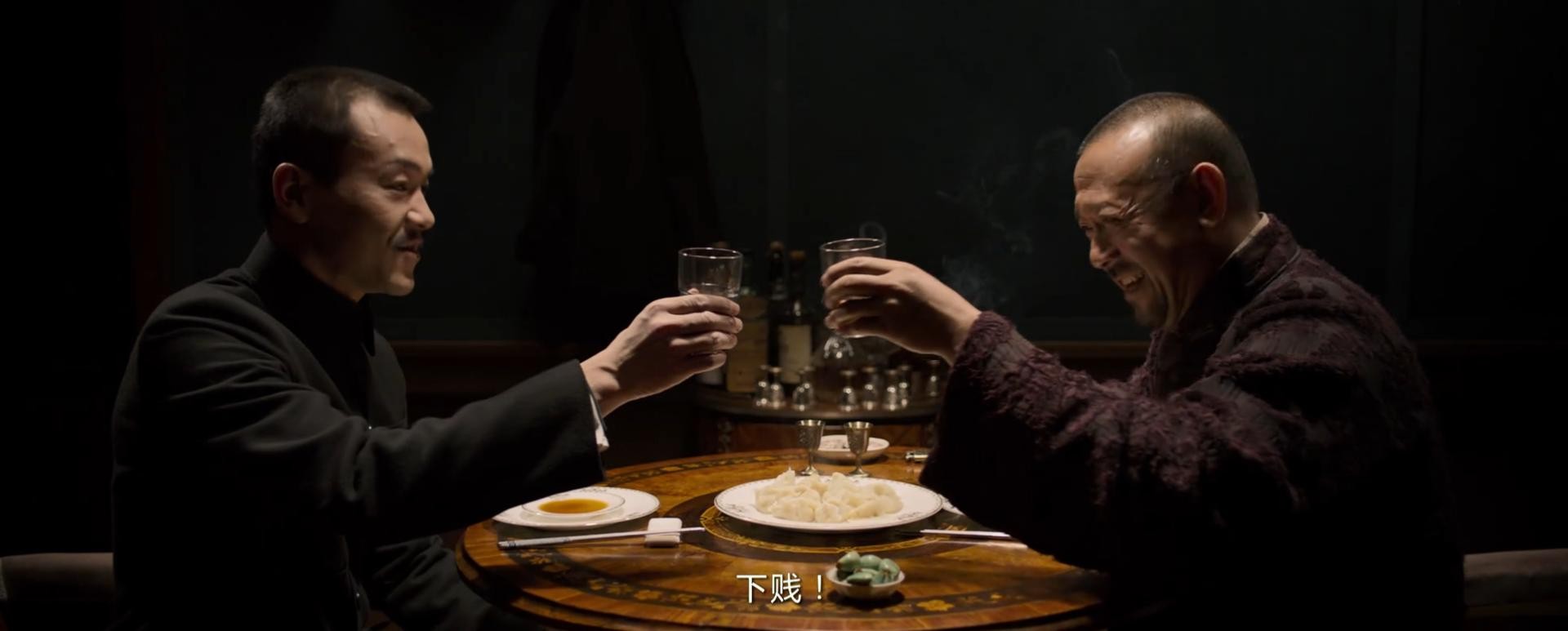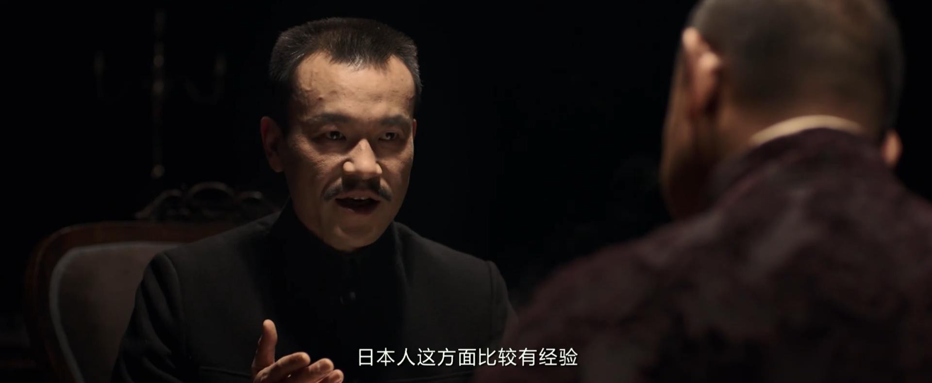 紧接着蓝青峰和朱潜龙开始吃饺子,其实就是谈生意(这饺子只要吃下去,就等于在合同上签名盖章了)。蓝青峰的合同看上去还是挺迷的:朱潜龙杀了根本一郎,他把李天然交给朱潜龙。蓝青峰和根本一郎这个时候几乎没什么交集,杀了根本一郎其实就是让朱潜龙和日本人彻底断绝关系,但是这个条件朱潜龙肯定要拒绝。因为从1912年宣统退位,到1932年伪满洲国建立,20年之间多少保皇党前赴后继,却只有外来的日本人办成了这件事!朱潜龙知道自己的皇帝梦如果有实现的一天,也唯有依靠日本人,所以和日本人一刀两断等于和自己的梦想一刀两断,凭什么?为什么?怎么能!