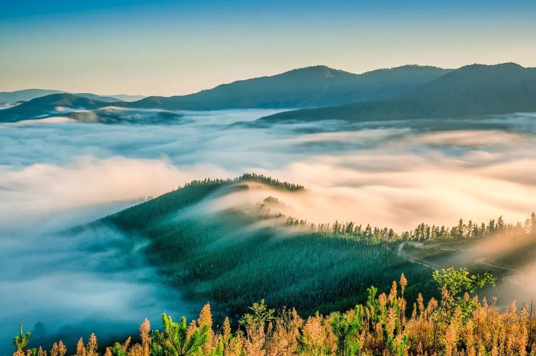 每当秋季来临,金秋10月,一眼望去,漫山都是火红火红的,还有那些蓝天白云下突兀的高山奇峰,在林间肆意地嬉戏的鸟儿,山谷中清澈的溪流、瀑布,犹如一幅五彩斑斓的水彩画。行走于这片古老的原始森林之间,一股股树木的芳馨沁入心脾,只觉神情气爽,让人忍不住一次次做深呼吸。