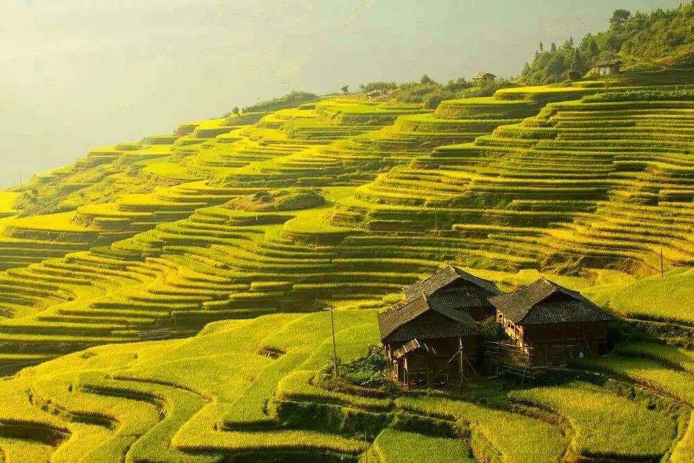 加榜梯田,隐藏于贵州九万大山之中的世外桃源,好似由梦编织的华章,在山坡上一挥而就。梯田中散落着苗乡特有的吊脚楼,若隐若现,飘渺悠然,让你在陶醉中生起一种身在幻境的错觉。这里不仅规模宏大,气势磅礴,而且线条优美。