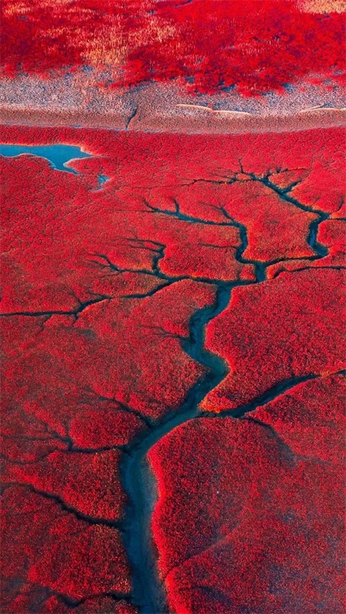 红海滩是《中国国家地理》评选的“中国最美六大沼泽地”,独一无二的世界红色海岸线。这里是中国最美的红色天堂,这里是丹顶鹤的自然保护区,也是世界独一无二的血色海洋,这里是盘锦红海滩。到了9、10月,那片红也变得深厚壮观起来。成群的白鹤仰颈高歌,和这红色的“海洋”绘成一副美丽的图画。秋天的红海滩,红得热烈,红得奔放,红得激情,红得活力,岁岁年年生长在这里。