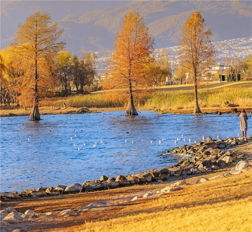 观赏地点有,沿着额济纳河走,每隔两三千米就分布着一道桥,一共有八道桥,一道桥叫陶来林二道桥倒影林,三道桥红柳海,四道桥英雄林,五道桥是土尔扈特庄园,六道桥是无尽落叶,七道桥梦境林,八道桥沙海林。除此之外,还有被称为魅影林的怪树林。由于国庆正值额济纳胡杨林最美时节,较平时人比较多,但因地处西北,与其他国庆热门景点相比人流量相对较少。