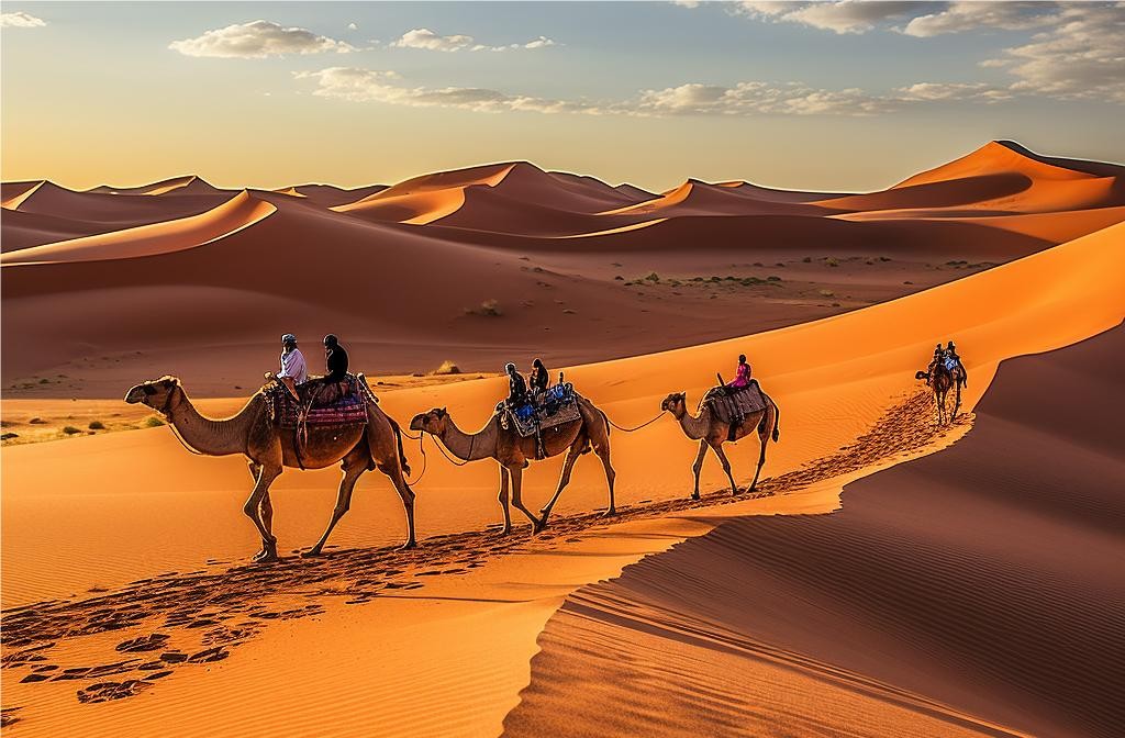 库木塔格沙漠即是“有沙山的沙漠”,雄浑的大漠风光和蓝天辉映相间,厚重的历史沉淀与西域文化默然相许,金色的沙漠依偎着绿洲守望家园,构成了一幅与大自然和谐共存的精美画卷,奏响了一曲浑然天成,金色涌动的天籁乐章。