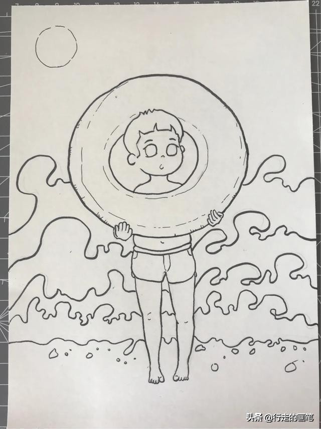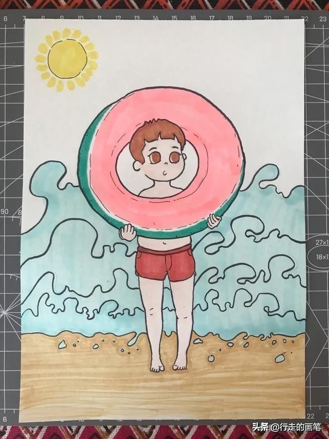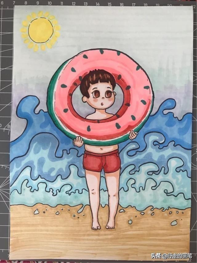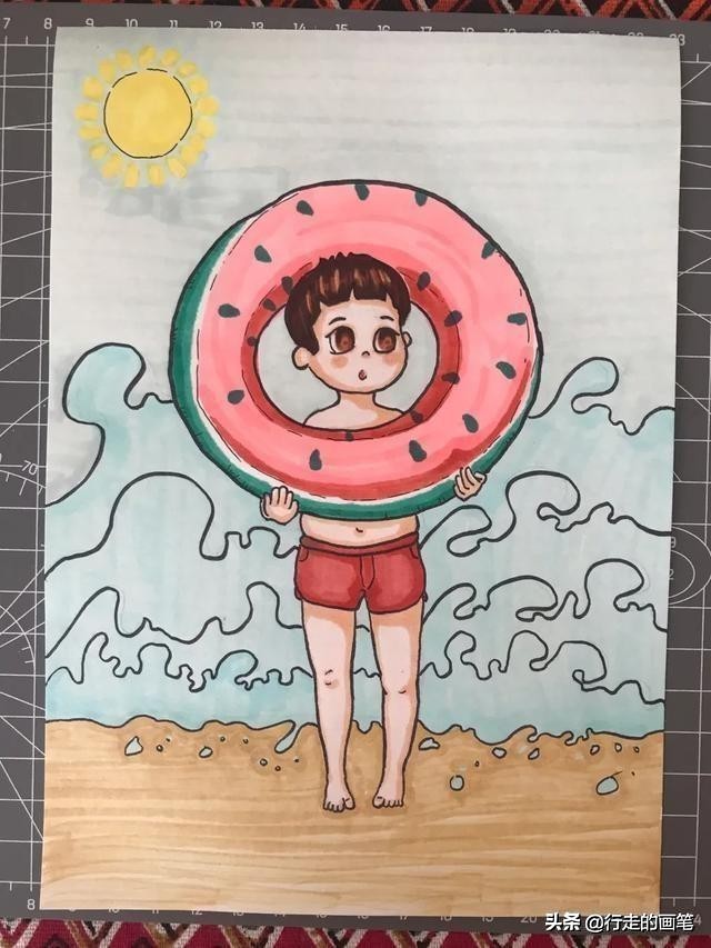 3.能够画出人物拿游泳圈的形象,画出人物在阳光照耀下,人物的明暗变化。