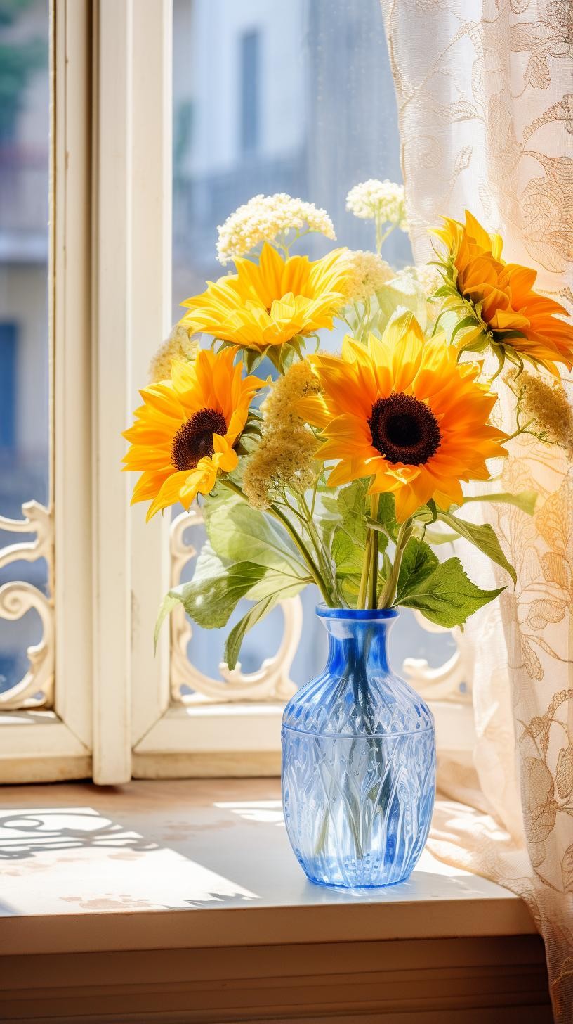 向日葵也是一种非常适合作为花瓶中观赏的花卉,采摘下来的向日葵,只要用清水养着,如果你想多养几日,在清水中舀2勺白糖,就可以保持好几日的新鲜,给家里增添不少色彩。家里如果没有合适的花瓶,吃剩的果汁的饮料瓶也是可以的,它并不挑容器,只要有水就可以绽放。