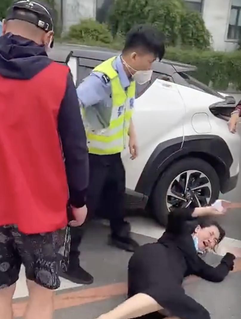 9.那倒地的警察一直不起来还喊“哎呀,操他妈的!别让她走”,起来后又把那女子推到在地,那女子之后情绪非常激动,甚至一度痛哭大吼,这女子穿着也很体面如果不是极其难受应该不会如此情绪失控。