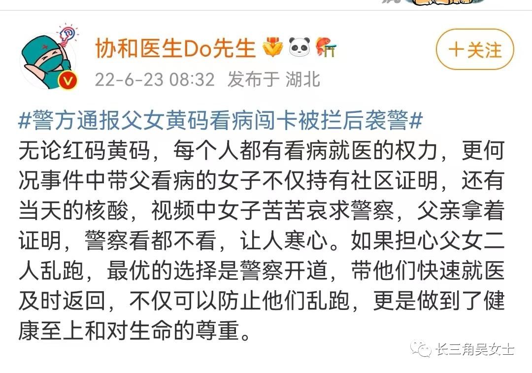 事情起因是,女儿带着七旬父亲去看病,遇到关卡被查,因为是黄码被拦下。