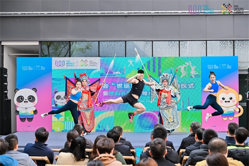 随着一段融合了国家级非物质文化遗产川剧和成都世运会比赛项目自由搏击的创意表演拉开了活动序幕。