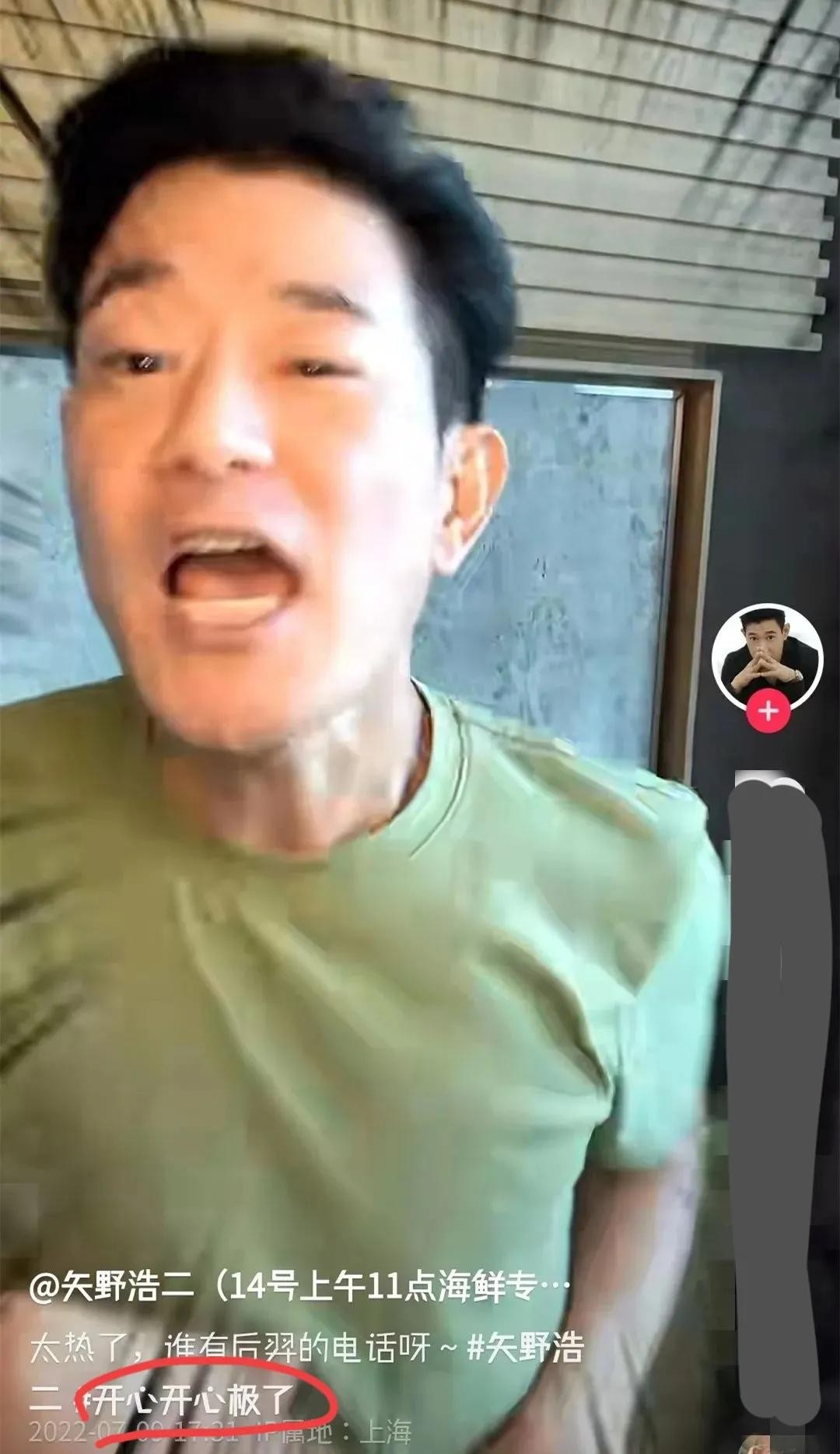 在某社交平台上,我们可以看到矢野浩二点赞了安倍晋三去世的消息,说明他肯定是知道的,但这些都没能影响他的生活。在安倍晋三离世后一天,矢野浩二正常发视频,带的话题是“开心,开心极了”。