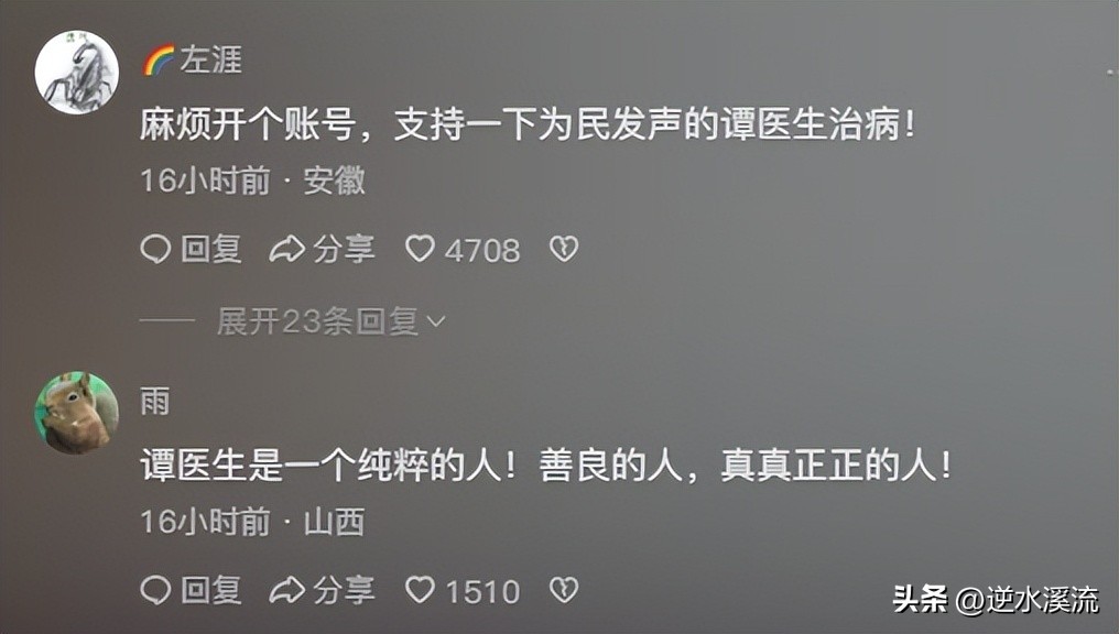 至于谭秦东本人,我们深感不安于他目前的身体状况。希望他能尽快康复健康,重拾医生的工作。同时,我们也希望社会各界能够共同重视公共事件中的言论自由问题,为公众利益和个人健康提供一个更公正自由的平台。只有在这样的环境下,我们各抒己见,才能真正关心他人和促进社会进步。