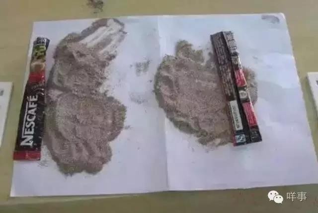 广州警方表示,贩毒团伙将摇头丸研磨成粉末,与K粉一起,按每袋约一克的比例掺入咖啡和奶茶粉末中,最后使用封口设备重新封装。