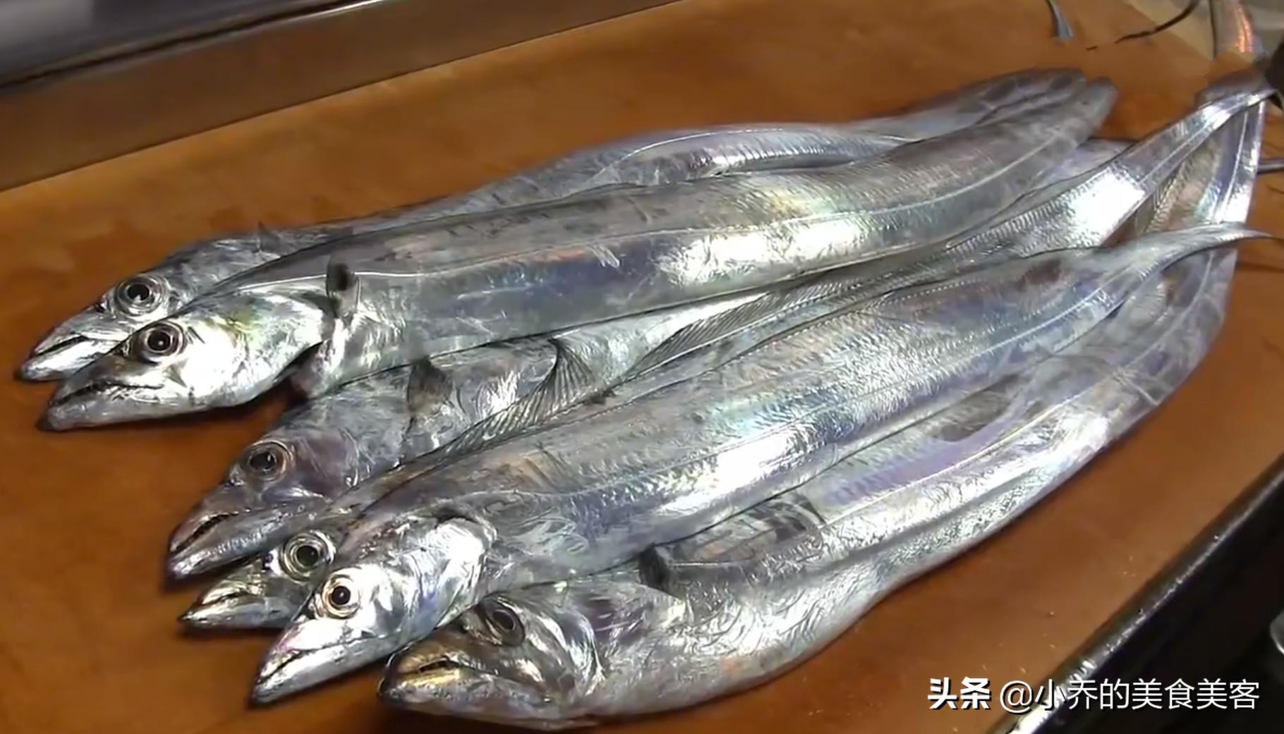说起各种海鱼,很多人还是很喜欢吃的。作为海产品中的一种,海鱼本身的鲜味极浓,另外区别于淡水鱼的是,海鱼不仅肉质鲜嫩,关键是鱼身上的刺还比较少,吃起来很方便。带鱼也是海鱼中的一种,本身味道鲜美,但是不易存储,所以很多带鱼都是速冻的,我们平时的吃法大部分也是以红烧或者干炸为主,但是对于爱吃生鱼片的日本人来说,他们又是怎么来处理带鱼的呢?这么新鲜的带鱼真少见,银光发亮,看日本厨师是如何给带鱼去骨的。