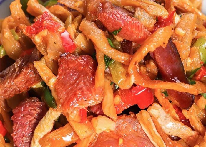 炒出来的风味远比平常人家所做的葛根粉炒腊肉更加美味。