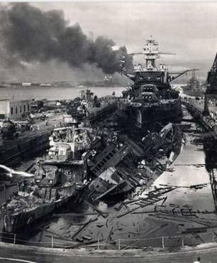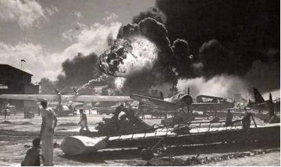 1941年12月7日清晨,美国太平洋舰队所在地的夏威夷珍珠港,海面平静,阳光灿烂,瓦胡岛的7个机上,飞机有序的排列在一起,舰艇和往常一样,整整齐齐的停泊在港内。突然,伴随着飞机的轰鸣声,炸弹从天而降,瞬间,珍珠港变成一片火海,这是日本特遣舰队派出的第一批突击队驾驶183架飞机(原预计189架)偷袭珍珠港。
