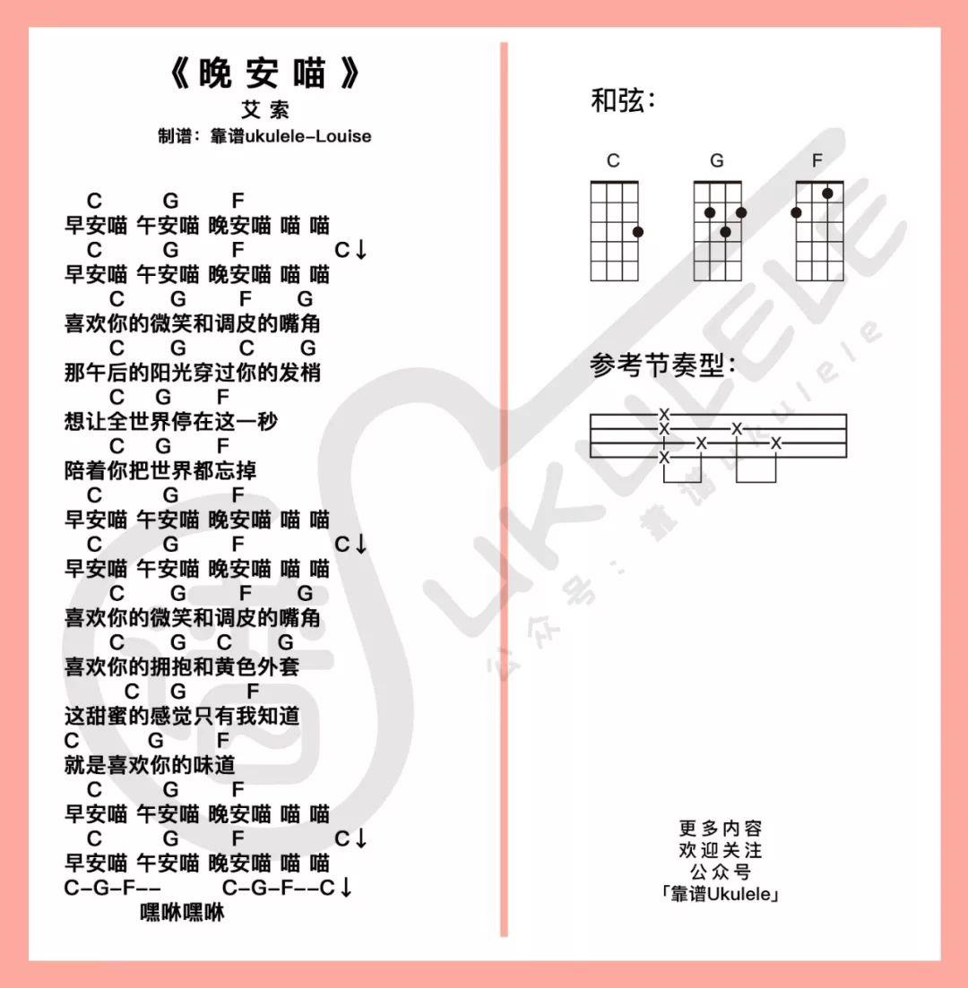 尤克里里弹唱谱 - 「晚安喵」艾索